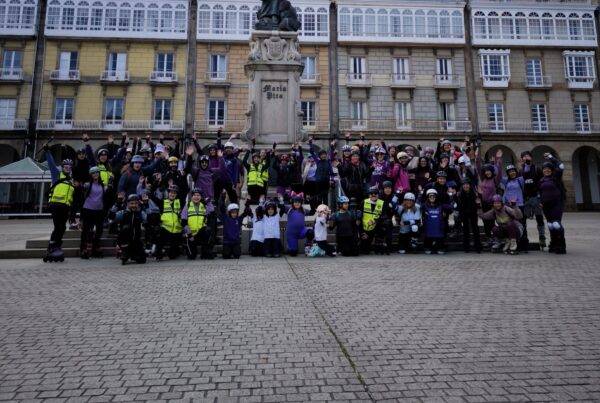El voluntariado de patinaje colabora en la Media Maratón C21 de A Coruña
